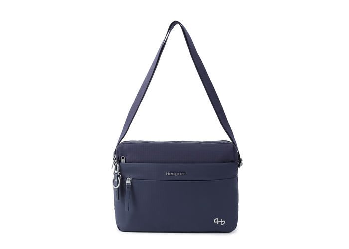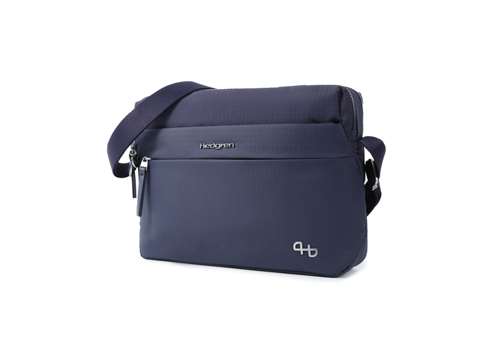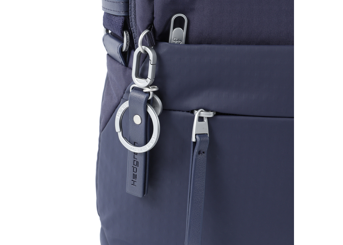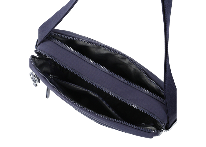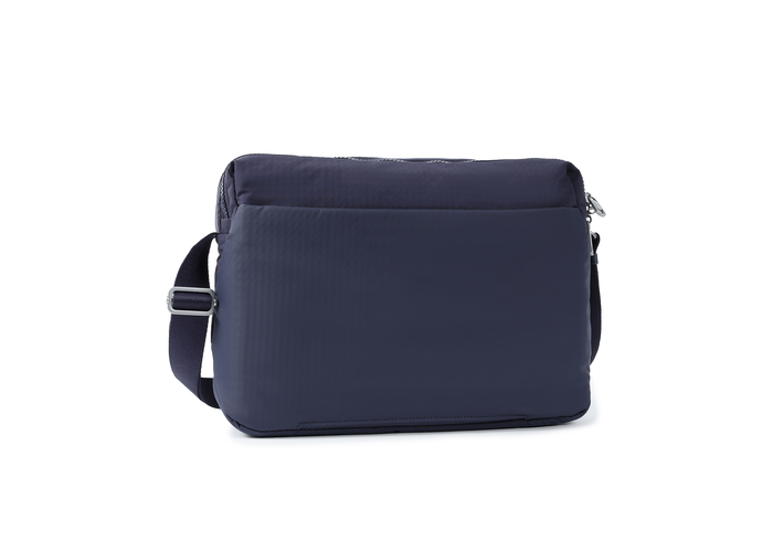 Удобная, вместительная сумка через плечо изготовлена из переработанной ткани в сочетании с эко-кожей. Оснащена двумя основными отделениями на молнии, с отделом для смартфона, и дополнительным карманом на молнии с RFID-защитой в первом, второй отдел предусмотрен для ноутбука 13" и документов формата А4, и поэтому на данном отделе молния, предусматривает возможность разместить навесной замок. Плотно прилегающая к телу как дополнительное средство безопасности также задний карман, при необходимости, благодаря молнии превращается в планку для фиксации на телескопическую ручку чемодана, что безусловно облегчает передвижение во время путешествий.
