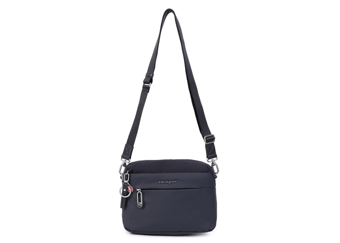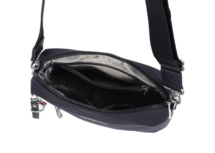 Удобная, вместительная сумка через плечо изготовлена из переработанной ткани в сочетании с эко-кожей. Оснащена двумя основными отделениями на молнии, с отделом для смартфона, и дополнительным карманом на молнии с RFID-защитой в первом, второй отдел предусмотрен для ноутбука 13" и документов формата А4, и поэтому на данном отделе молния, предусматривает возможность разместить навесной замок. Плотно прилегающая к телу как дополнительное средство безопасности также задний карман, при необходимости, благодаря молнии превращается в планку для фиксации на телескопическую ручку чемодана, что безусловно облегчает передвижение во время путешествий.