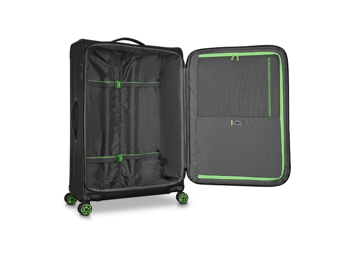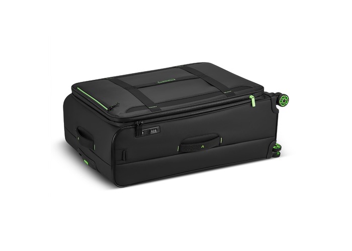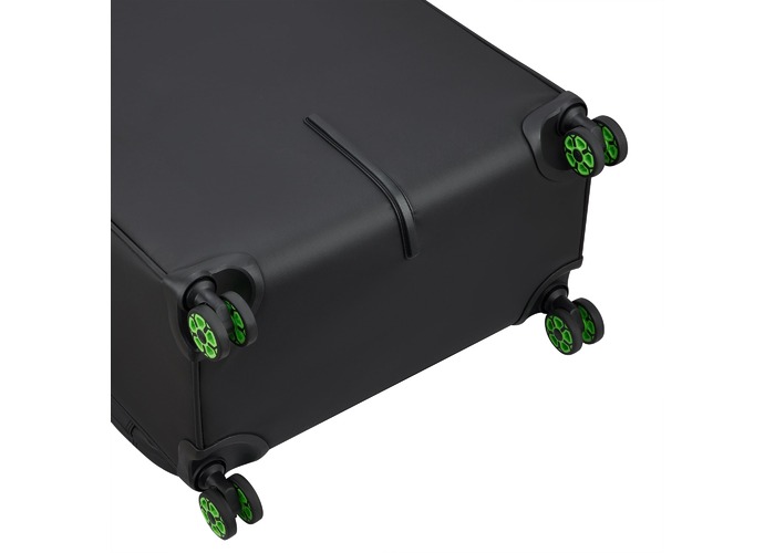 Изделия коллекции изготовлены из волнистого полиэстера 900D с PU-покоем, которое защищает от дождя, брызг, влаги и быстро сохнет. Обработанная поверхность гарантирует высокую стойкость к истиранию и износу, а также превосходную устойчивость к сцеплению и разрывам, даже при интенсивном использовании. Каждая тележка оснащена водонепроницаемой молнией и кодовым замком TSA-системой, что обеспечивает максимальную безопасность ваших личных вещей, содержащихся внутри багажа. Двойные колеса, вращающиеся на 360°, нижняя часть чемодана усилена текстурированным стойким к царапинам резиновым материалом.