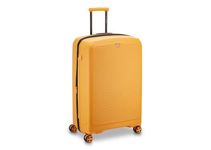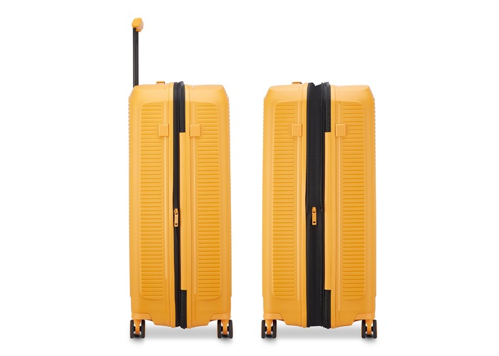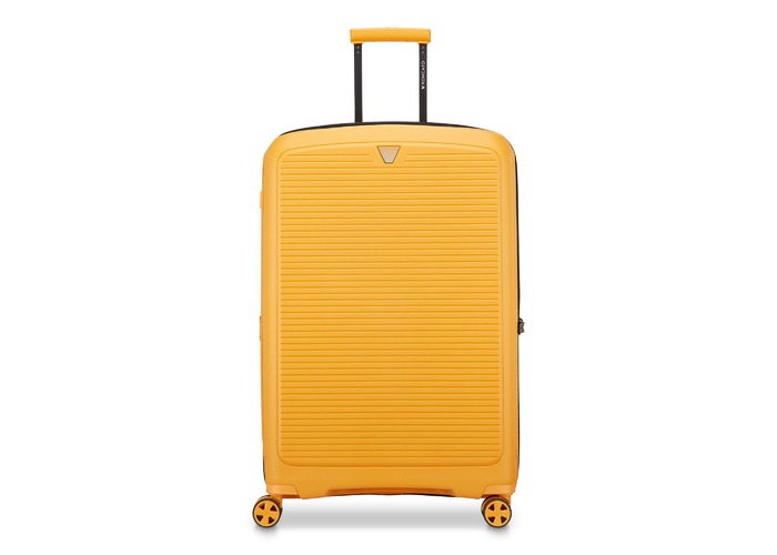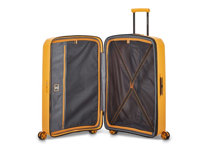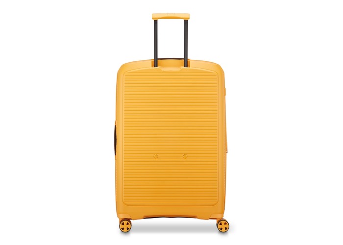 Чемодан изготовлен из полипропилена на 100% переработанного материала, который предлагает: максимальную ударопрочность, чрезвычайную прочность, оптимальную лёгкость, термостойкость. Оснащена 4 спаренными и маневренными колесами. Для удобства перемещения предусмотрена гибкая, подъемная пластиковая ручка на верхней и боковой панелях, а также телескопическая ручка. Безопасность и сохранность багажа обеспечивает встроенный кодовый замок с системой TSA. Изделие состоит из двух больших отделений, оснащенных разделителями и эластичными прижимными ремнями. Также имеет расширение для увеличения пространства для вещей.