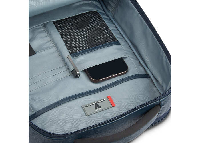 Изделие изготовлено из натуральной итальянской кожи. Оснащен двумя основными отделами на молнии, в которых есть возможность разместить ноутбук, планшет, смартфон, пишущие предметы, повербанк и необходимые Вам вещи. Передняя часть изделия имеет, дополнительный, небольшой карман с водонепроницаемой молнией и съемным брелоком. Задняя часть изделия оснащена умным рукавом для крепления на телескопическую ручку чемодана, дополнительно имеет мягкую спинку и плечевые ремни. Для удобства переноски оборудован противоскользящей ручкой.