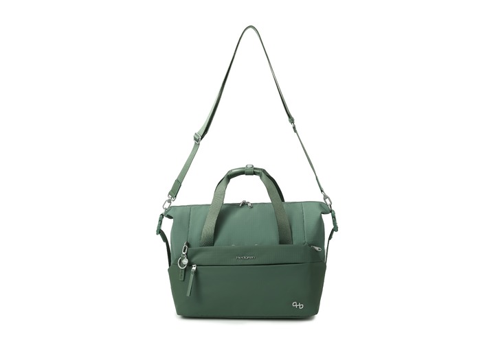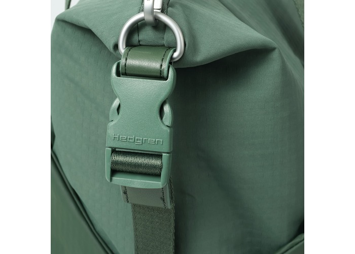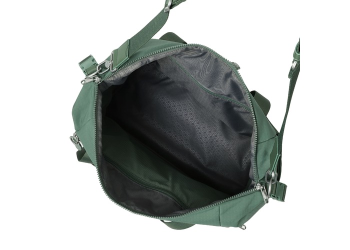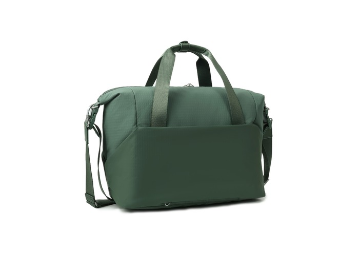 Удобная, многофункциональная сумка изготовлена из переработанной ткани в сочетании с эко-кожей. Оснащена основным отделением на молнии с отделом для смартфона и дополнительным карманом на молнии с RFID-защитой. Молния на основном отделе предусматривает возможность разместить навесной замок для обеспечения дополнительной безопасности ценных вещей. Открытый боковой карман для бутылки или зонтика, второй боковой на молнии для мелких вещей, также два кармана на передней части изделия для вещей первой необходимости. На заднем кармане изделия, предусмотрена утопленная молния, которая плотно прилегает к телу, как дополнительное средство безопасности, данный карман, при необходимости, благодаря молнии превращается в планку для фиксации на телескопическую ручку чемодана, что безусловно облегчает передвижение во время путешествий. Полуавтоматические застежки, потому что бокам сумки созданы для того, чтобы при необходимости менять изделие в размере и брать на борт самолета, как ручную кладь. Дополнительно оснащена плечевыми лямками и съемным плечевым ремнем.
