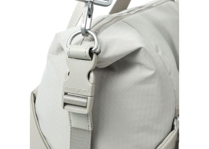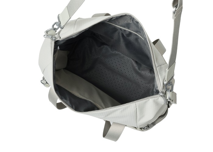 Удобная, многофункциональная сумка изготовлена из переработанной ткани в сочетании с эко-кожей. Оснащена основным отделением на молнии с отделом для смартфона и дополнительным карманом на молнии с RFID-защитой. Молния на основном отделе предусматривает возможность разместить навесной замок для обеспечения дополнительной безопасности ценных вещей. Открытый боковой карман для бутылки или зонтика, второй боковой на молнии для мелких вещей, также два кармана на передней части изделия для вещей первой необходимости. На заднем кармане изделия, предусмотрена утопленная молния, которая плотно прилегает к телу, как дополнительное средство безопасности, данный карман, при необходимости, благодаря молнии превращается в планку для фиксации на телескопическую ручку чемодана, что безусловно облегчает передвижение во время путешествий. Полуавтоматические застежки, потому что бокам сумки созданы для того, чтобы при необходимости менять изделие в размере и брать на борт самолета, как ручную кладь. Дополнительно оснащена плечевыми лямками и съемным плечевым ремнем.