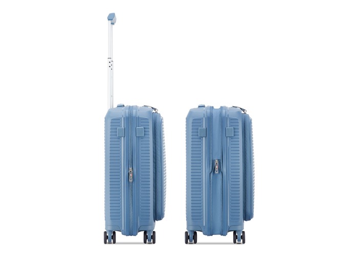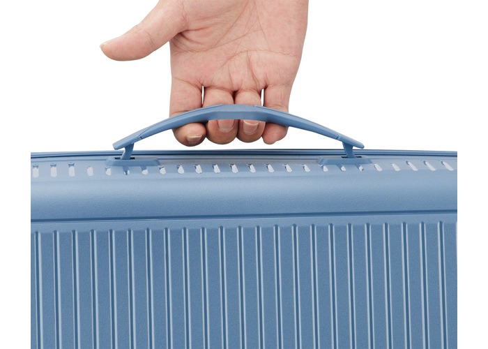 Чемодан изготовлен из полипропилена на 100% переработанного материала, который предлагает: максимальную ударопрочность, чрезвычайную прочность, оптимальную лёгкость, термостойкость. Оснащена 4 спаренными и маневренными колесами. Для удобства перемещения предусмотрена гибкая, подъемная пластиковая ручка на верхней и боковой панелях, а также телескопическая ручка. Безопасность и сохранность багажа обеспечивает встроенный кодовый замок с системой TSA. Среди наиболее ценных особенностей – инновационная система FLAT TOP: открывающаяся крышка на 90° вместо центрального отверстия. Дизайн разработан для уменьшения объема и облегчения доступа к содержимому.