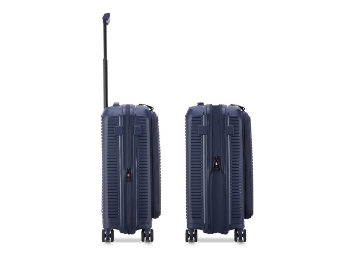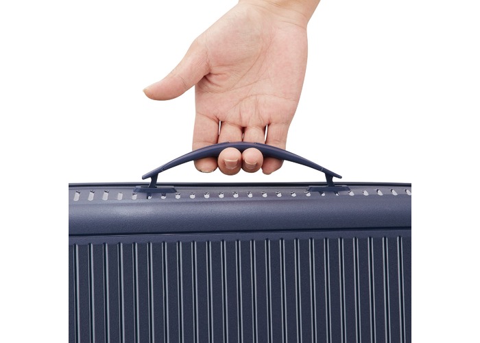 Чемодан изготовлен из полипропилена на 100% переработанного материала, который предлагает: максимальную ударопрочность, чрезвычайную прочность, оптимальную лёгкость, термостойкость. Оснащена 4 спаренными и маневренными колесами. Для удобства перемещения предусмотрена гибкая, подъемная пластиковая ручка на верхней и боковой панелях, а также телескопическая ручка. Безопасность и сохранность багажа обеспечивает встроенный кодовый замок с системой TSA. Среди наиболее ценных особенностей – инновационная система FLAT TOP: открывающаяся крышка на 90° вместо центрального отверстия. Дизайн разработан для уменьшения объема и облегчения доступа к содержимому.
