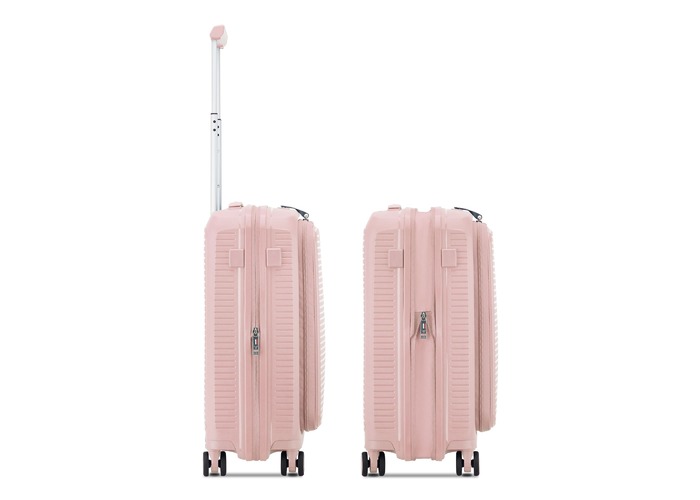 Чемодан изготовлен из полипропилена на 100% переработанного материала, который предлагает: максимальную ударопрочность, чрезвычайную прочность, оптимальную лёгкость, термостойкость. Оснащена 4 спаренными и маневренными колесами. Для удобства перемещения предусмотрена гибкая, подъемная пластиковая ручка на верхней и боковой панелях, а также телескопическая ручка. Безопасность и сохранность багажа обеспечивает встроенный кодовый замок с системой TSA. Среди наиболее ценных особенностей – инновационная система FLAT TOP: открывающаяся крышка на 90° вместо центрального отверстия. Дизайн разработан для уменьшения объема и облегчения доступа к содержимому.