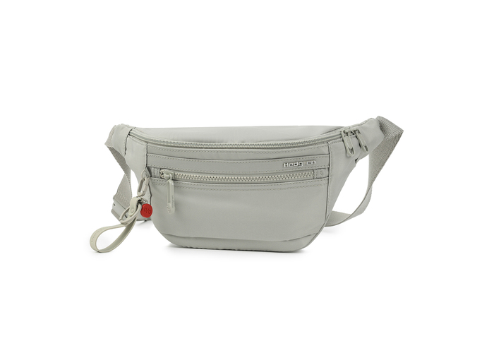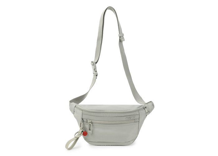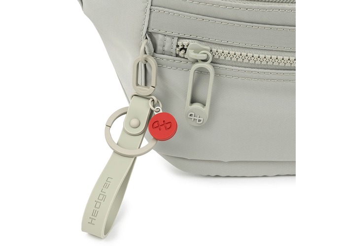 Поясная сумка из прочной ткани, оснащена ремнем с возможностью регулировки длины. У изделия одно основное отделение, которое оснащено дополнительным, внутренним карманом. На фасадной части расположен карман на молнии. На задней части расположен карман с RFID-защитой от мошенничества. Изделие декорировано брелоком с названием бренда.
