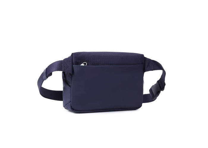Удобная, компактная сумка на пояс изготовлена из переработанной ткани в сочетании с эко-кожей. Оснащена основным отделением на молнии с отделом для смартфона и дополнительным карманом на молнии с RFID-защитой. На заднем кармане изделия предусмотрена утопленная молния, плотно прилегающая к телу, как дополнительное средство безопасности. Имеет регулируемый по длине ремень и полуавтоматическую застежку.