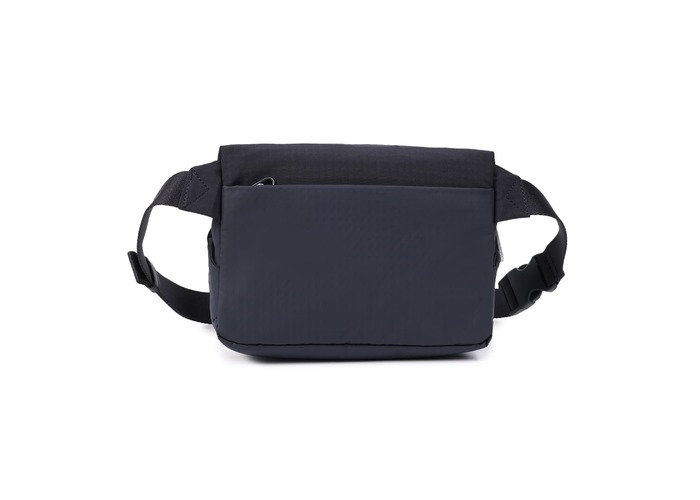 Удобная, компактная сумка на пояс изготовлена из переработанной ткани в сочетании с эко-кожей. Оснащена основным отделением на молнии с отделом для смартфона и дополнительным карманом на молнии с RFID-защитой. На заднем кармане изделия предусмотрена утопленная молния, плотно прилегающая к телу, как дополнительное средство безопасности. Имеет регулируемый по длине ремень и полуавтоматическую застежку.