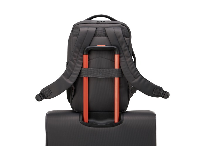 Рюкзак для путешествий – уникальная возможность соединить личные вещи с гаджетами. Внутренняя часть изделия снабжена эластичными ремнями для крепления одежды, перегородками и карманами для мелких вещей. Снаружи есть два легкодоступных отделения и две эргономичные ручки для облегчения подъема рюкзака. Также боковые карманы для бутылки и парасальки. На задней части изделия планка для крепления на телескопическую ручку чемодана, карман на молнии и мягкие плечевые ремни