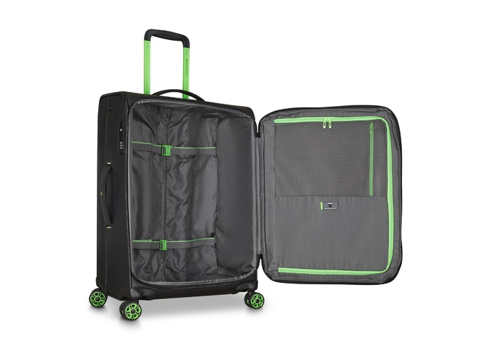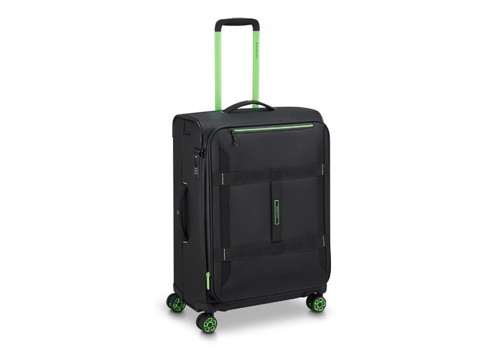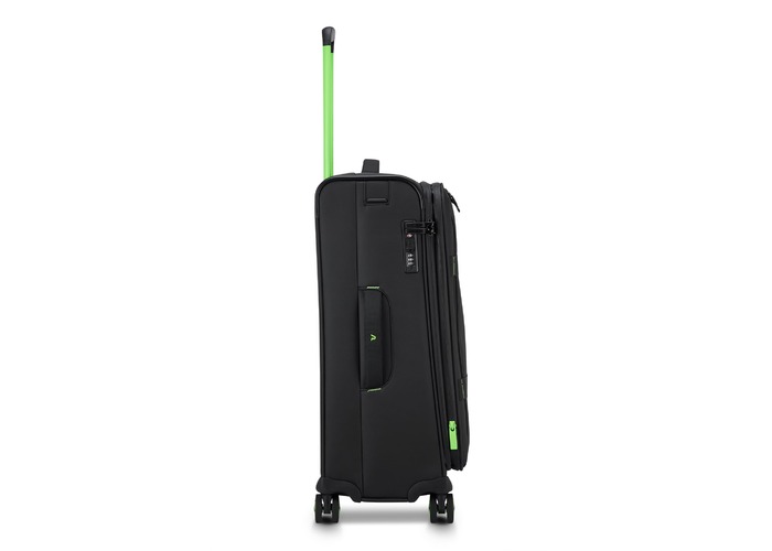 Изделия коллекции изготовлены из волнистого полиэстера 900D с PU-покоем, которое защищает от дождя, брызг, влаги и быстро сохнет. Обработанная поверхность гарантирует высокую стойкость к истиранию и износу, а также превосходную устойчивость к сцеплению и разрывам, даже при интенсивном использовании. Каждая тележка оснащена водонепроницаемой молнией и кодовым замком TSA-системой, что обеспечивает максимальную безопасность ваших личных вещей, содержащихся внутри багажа. Двойные колеса, вращающиеся на 360°, нижняя часть чемодана усилена текстурированным стойким к царапинам резиновым материалом.
