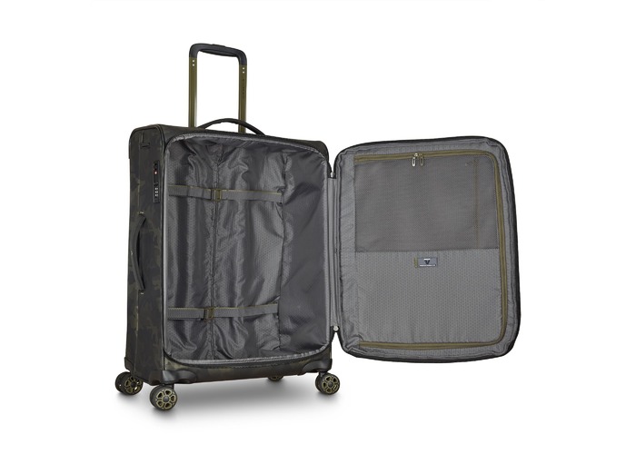 Изделия коллекции изготовлены из волнистого полиэстера 900D с PU-покоем, которое защищает от дождя, брызг, влаги и быстро сохнет. Обработанная поверхность гарантирует высокую стойкость к истиранию и износу, а также превосходную устойчивость к сцеплению и разрывам, даже при интенсивном использовании. Каждая тележка оснащена водонепроницаемой молнией и кодовым замком TSA-системой, что обеспечивает максимальную безопасность ваших личных вещей, содержащихся внутри багажа. Двойные колеса, вращающиеся на 360°, нижняя часть чемодана усилена текстурированным стойким к царапинам резиновым материалом.