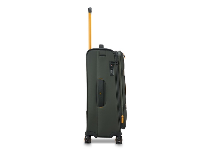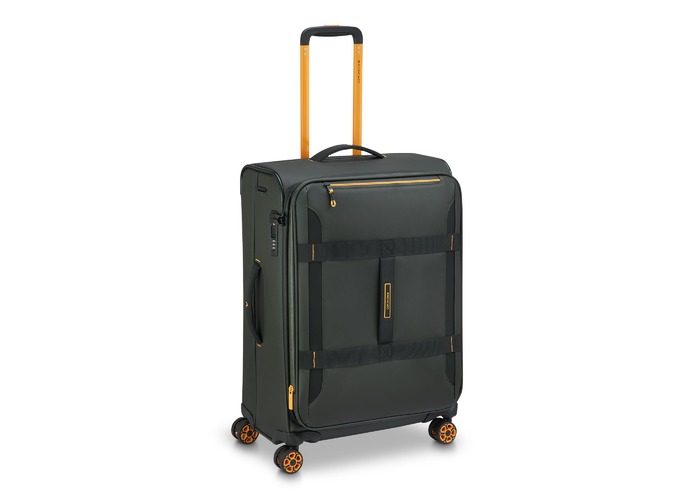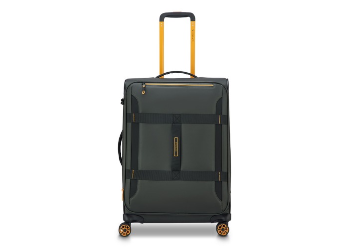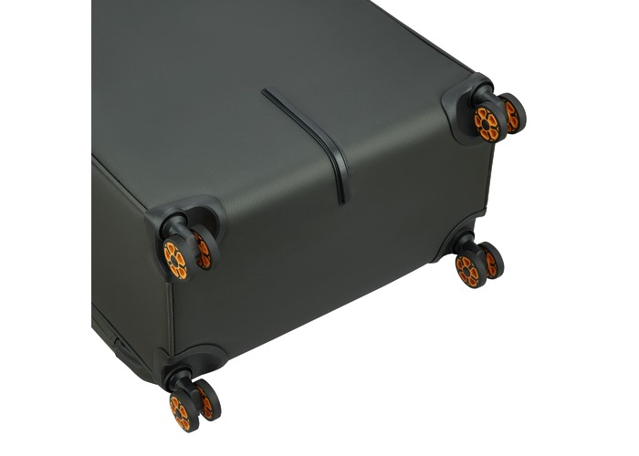 Изделия коллекции изготовлены из волнистого полиэстера 900D с PU-покоем, которое защищает от дождя, брызг, влаги и быстро сохнет. Обработанная поверхность гарантирует высокую стойкость к истиранию и износу, а также превосходную устойчивость к сцеплению и разрывам, даже при интенсивном использовании. Каждая тележка оснащена водонепроницаемой молнией и кодовым замком TSA-системой, что обеспечивает максимальную безопасность ваших личных вещей, содержащихся внутри багажа. Двойные колеса, вращающиеся на 360°, нижняя часть чемодана усилена текстурированным стойким к царапинам резиновым материалом.