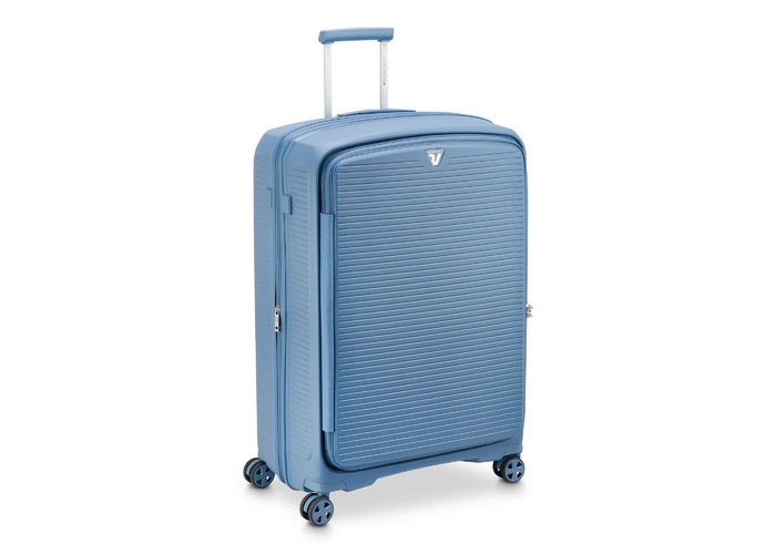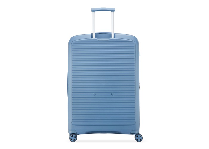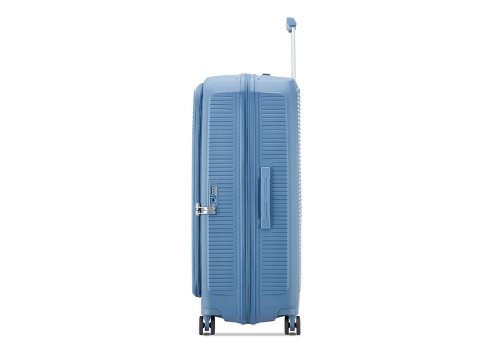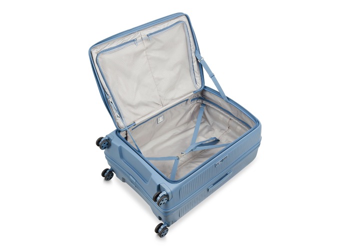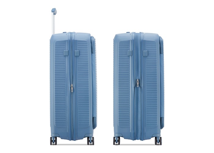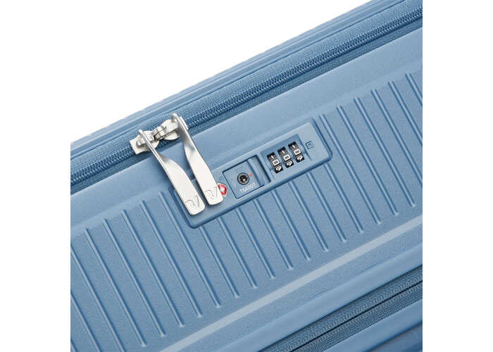 Чемодан изготовлен из полипропилена на 100% переработанного материала, который предлагает: максимальную ударопрочность, чрезвычайную прочность, оптимальную лёгкость, термостойкость. Оснащена 4 спаренными и маневренными колесами. Для удобства перемещения предусмотрена гибкая, подъемная пластиковая ручка на верхней и боковой панелях, а также телескопическая ручка. Безопасность и сохранность багажа обеспечивает встроенный кодовый замок с системой TSA. Среди наиболее ценных особенностей – инновационная система FLAT TOP: открывающаяся крышка на 90° вместо центрального отверстия. Дизайн разработан для уменьшения объема и облегчения доступа к содержимому.