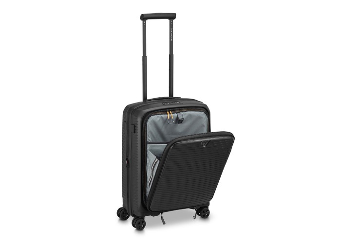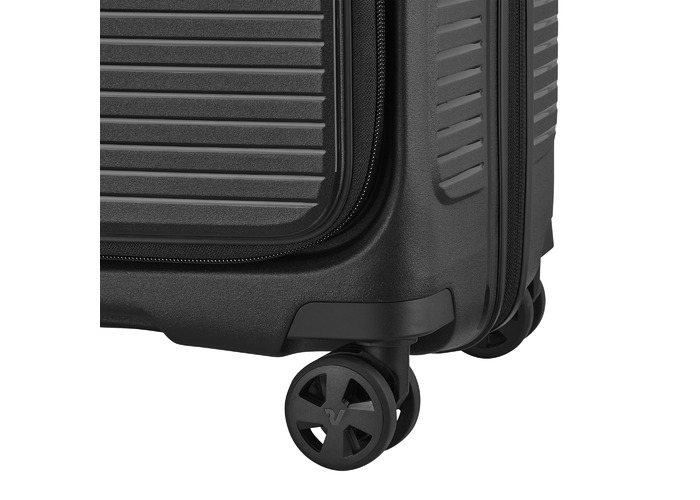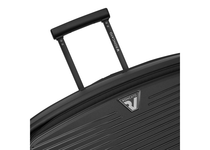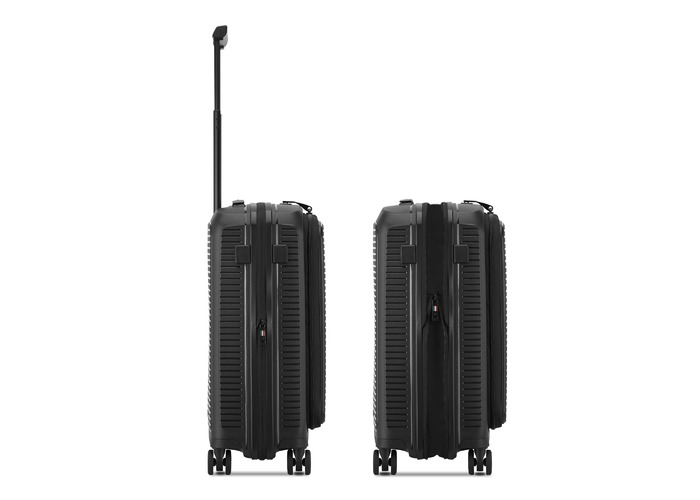 Чемодан изготовлен из полипропилена на 100% переработанного материала, который предлагает: максимальную ударопрочность, чрезвычайную прочность, оптимальную лёгкость, термостойкость. Оснащена 4 спаренными и маневренными колесами. Для удобства перемещения предусмотрена гибкая, подъемная пластиковая ручка на верхней и боковой панелях, а также телескопическая ручка. Безопасность и сохранность багажа обеспечивает встроенный кодовый замок с системой TSA. Среди наиболее ценных особенностей – инновационная система FLAT TOP: открывающаяся крышка на 90° вместо центрального отверстия. Дизайн разработан для уменьшения объема и облегчения доступа к содержимому.