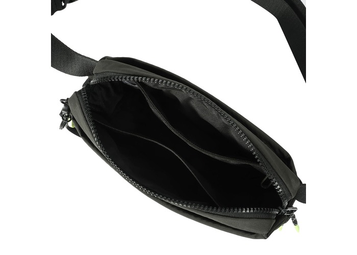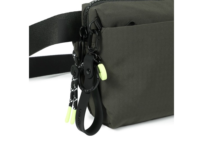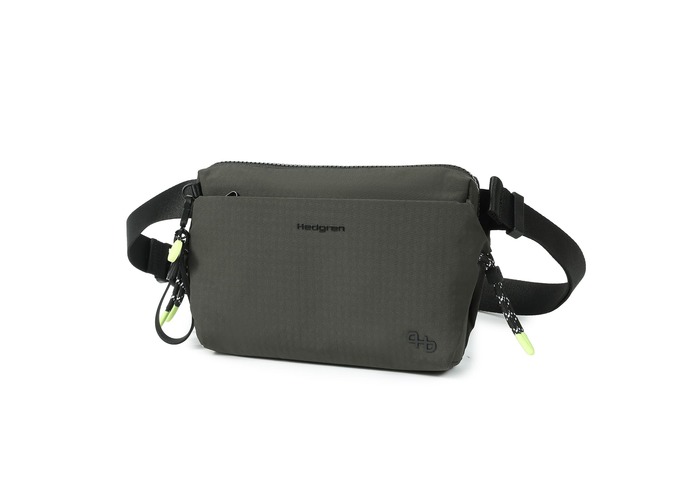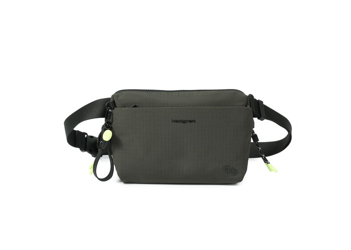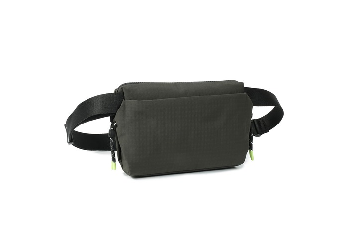 Удобная, компактная сумка на пояс, небольшого размера изготовлена из переработанной ткани. Оснащена основным отделением на молнии с отделом для смартфона и дополнительным карманом на молнии. На заднем кармане изделия предусмотрена утопленная молния, плотно прилегающая к телу, как дополнительное средство безопасности. Также при необходимости сумка расширяется. Имеет регулируемый по длине ремень и полуавтоматическую застежку.