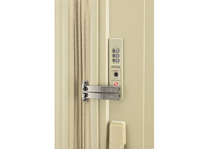Аксесуар оснащений вбудованим кодовим замком з системою TSA. Усередині два відділення оснащені притискними ременями, в одному з яких є сітчаста кришка на блискавці. Також, підтримувати чистоту та свіжіть Вашої валізи допоможе знімна підкладка, яку можна попрати при 30°.