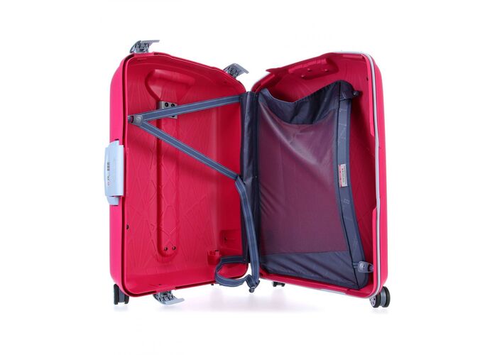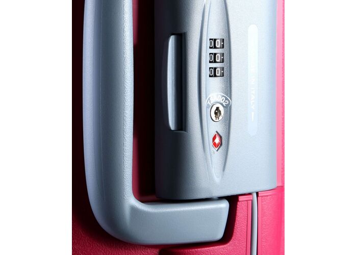 Велика валіза оснащена вбудованим кодовим замком з системою TSA, спареними колесами, що обертаються на 360̊, які надають валізі маневреність і збільшують його вантажопідйомність, всередині зручна і проста організація, передбачена кишеня-перегородка і притискні ремені.