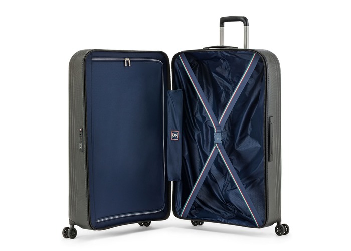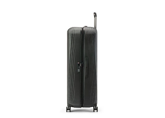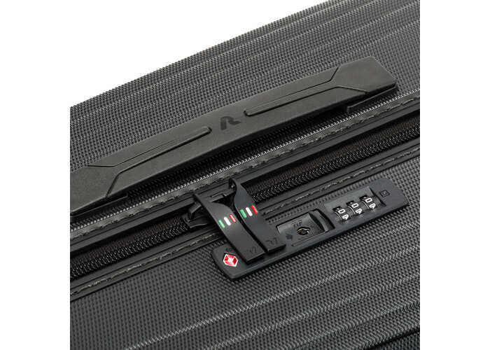 Валіза виготовлена з преміального чистого європейського полікарбонату з текстурою, стійкою до подряпин. Подвійні поворотні колеса забезпечують легкість, міцність та плавне кочення, водночас будучи інтегрованими в багаж для додаткового захисту від ударів. Вбудований кодовий замок з системою TSA, подвійною блискавкою High Tech Security Zip з водостійкою обробкою. Оснащена сталевою, зміцненою телескопічною системою, прогумованими підйомними ручками для зручності переміщення, відмінною організацією всередині з притискними ременями.