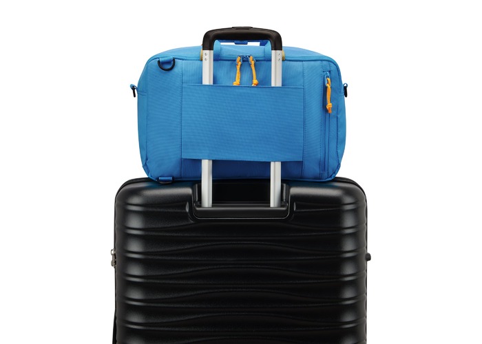 Унікальна дорожня сумка, яка за потреби перетворюється в рюкзак, а в цілому має 3 положення для перенесення: на передліччі, через плече, рюкзак. Зовнішня тканина виготовлена з поліестеру 600X500 для забезпечення довговічності та легкості. Виріб оснащений двома місткими відділами, в яких передбачено місце для ноутбука 15.6", документів та одягу. Зовні кишеня на блискавці для речей першої необхідності. На задній частині планка для кріплення на телескопічну ручку валізи та м'які плечові ремені, які можна сховати у спеціальну кишеню.