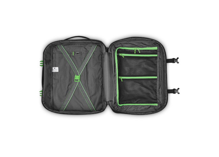 Ідеальний варіант для відряджень в яких Вам знадобляться, предмети першої необхідності і місце для одягу. Вироби колекції виготовлені з хвилястого поліестеру 900D з PU-покиттям, яке захищає від дощу, бризок, вологи й швидко сохне. Виріб оснащений: компактним основним відділом з кишенею для дрібних предметів з сітчастою перегородкою для організації та розділення одягу з еластичними притискними ременями. Розмір виробу дозволяє брати рюкзак на борт літака авіакомпанії VUELING/WIZZAIR/RYANAIR. Для зручності переміщення на задній частині розміщені м'які плечові ремені, бічна ручка для горизонтального перенесення та тканинна планка для кріплення на телескопічній ручці валізи.