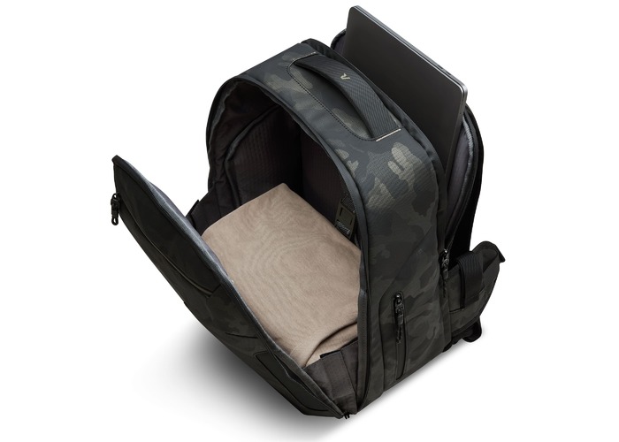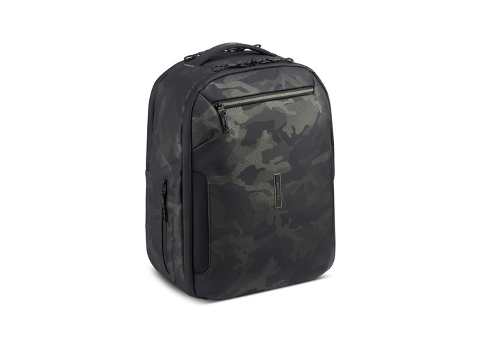Рюкзак для подорожей-унікальна можливість поєднати особисті речі з сучасними гаджетами. Ідеальний варіант для відряджень в яких Вам знадобляться техніка, предмети першої необхідності і місце для одягу. Вироби колекції виготовлені з хвилястого поліестеру 900D з PU-покиттям, яке захищає від дощу, бризок, вологи й швидко сохне. Виріб оснащений двома основними віддідами, з кишенею для дрібних предметів з сітчастою перегородкою для організації та розділення одягу. Другий відділ призначений для ноутбука 14", планшету та документів. Також, передбачена бічна кишеня для пляшки/парасольки. Для зручності переміщення на задній частині розміщені м'які плечові ремені, планка для фіксації на телескопічній системі валізи, можливість застібнути плечові ремені фіксатором на грудях та ручка для вертикального перенесення.