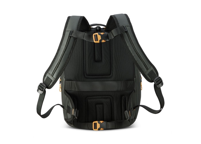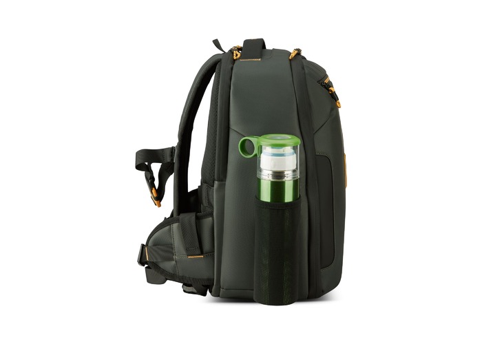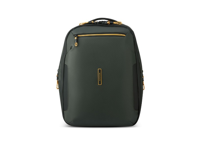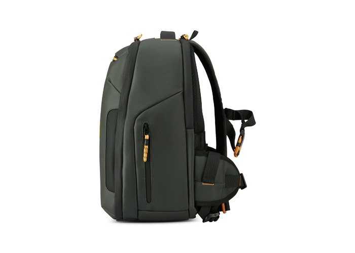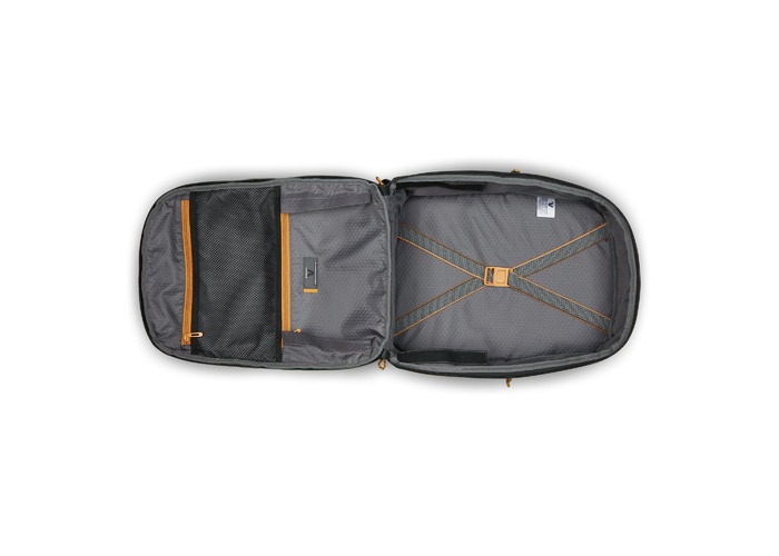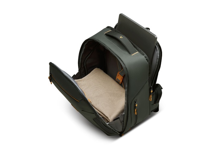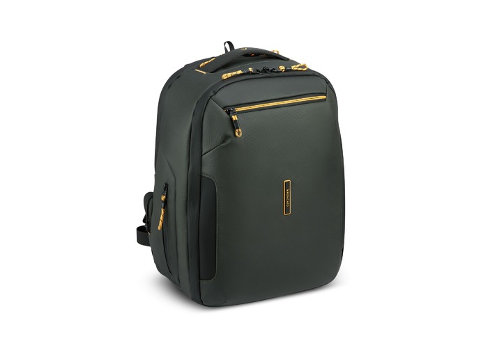 Рюкзак для подорожей-унікальна можливість поєднати особисті речі з сучасними гаджетами. Ідеальний варіант для відряджень в яких Вам знадобляться техніка, предмети першої необхідності і місце для одягу. Вироби колекції виготовлені з хвилястого поліестеру 900D з PU-покиттям, яке захищає від дощу, бризок, вологи й швидко сохне. Виріб оснащений двома основними віддідами, з кишенею для дрібних предметів з сітчастою перегородкою для організації та розділення одягу. Другий відділ призначений для ноутбука 14", планшету та документів. Також, передбачена бічна кишеня для пляшки/парасольки. Для зручності переміщення на задній частині розміщені м'які плечові ремені, планка для фіксації на телескопічній системі валізи, можливість застібнути плечові ремені фіксатором на грудях та ручка для вертикального перенесення.