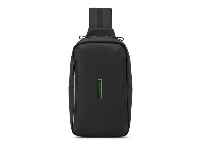 Сумка-слінг ідеально підходить для щоденного використання, дозволить звільнити руки і помістити речі першої необхідності, наприклад ключі, смартфон, портмоне. Оснащена одним основним відділенням в якому є внутрішній відділ для смартфону та відділ для планшету. З зовнішньої сторони кишеня на блискавці для дрібниць. Вироби колекції виготовлені з хвилястого поліестеру 900D з PU-покиттям, яке захищає від дощу, бризок, вологи й швидко сохне. Для зручності переміщення на задній частині розміщені плечові ремені, які за допомогою блискавки у суцільний ремінь, що дозволяє обирати як носити сумку.