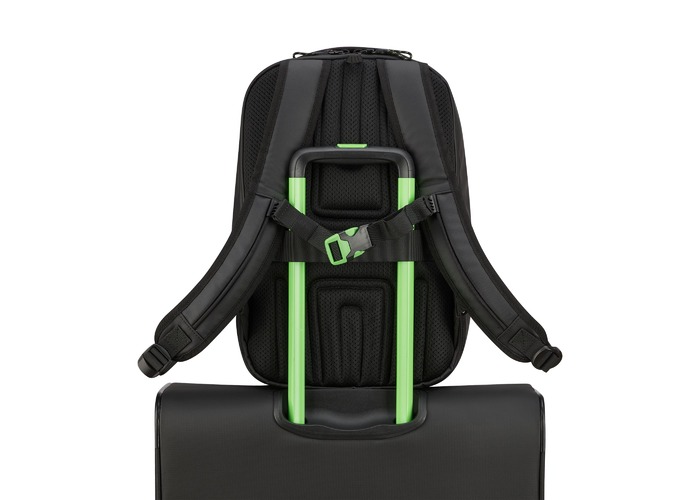 Рюкзак для подорожей-унікальна можливість поєднати особисті речі з сучасними гаджетами. Ідеальний варіант для відряджень в яких Вам знадобляться техніка, предмети першої необхідності і місце для одягу. Вироби колекції виготовлені з хвилястого поліестеру 900D з PU-покиттям, яке захищає від дощу, бризок, вологи й швидко сохне. Виріб оснащений двома основними віддідами, з кишенею для дрібних предметів з сітчастою перегородкою для організації та розділення одягу. Другий відділ призначений для ноутбука 15.6", планшету та документів формату А4. Також, передбачена бічна кишеня для пляшки/парасольки. Для зручності переміщення на задній частині розміщені м'які плечові ремені, планка для фіксації на телескопічній системі валізи, можливість застібнути плечові ремені фіксатором на грудях та ручка для вертикального перенесення.