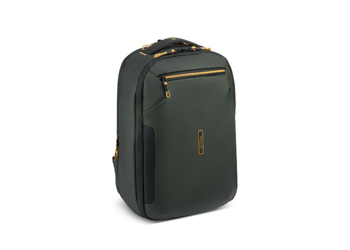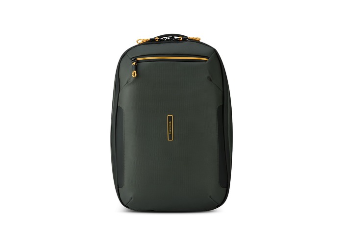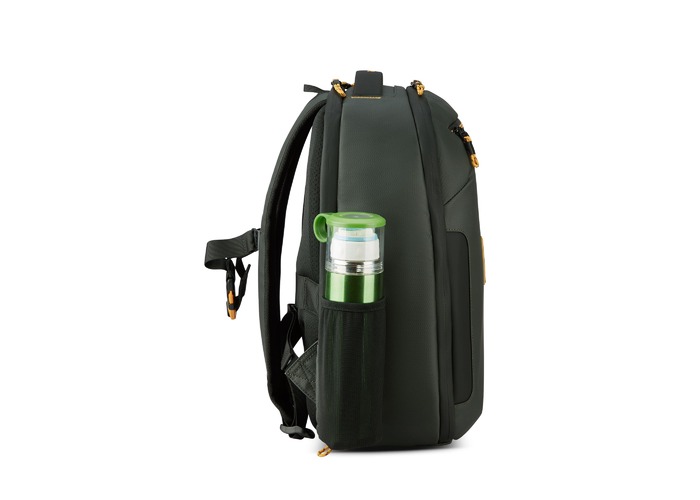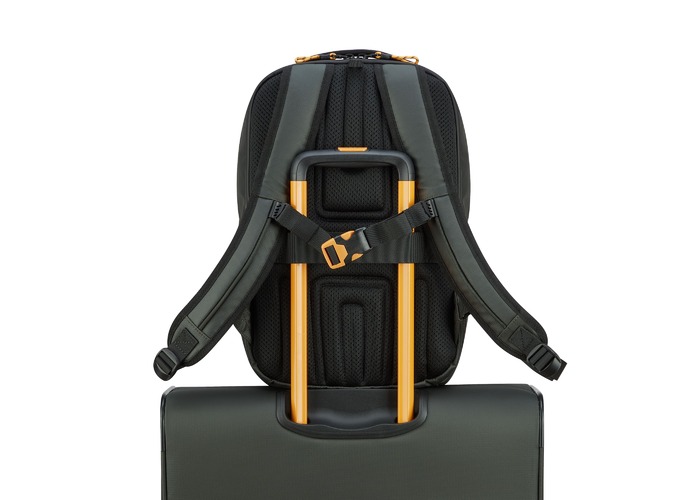 Рюкзак для подорожей-унікальна можливість поєднати особисті речі з сучасними гаджетами. Ідеальний варіант для відряджень в яких Вам знадобляться техніка, предмети першої необхідності і місце для одягу. Вироби колекції виготовлені з хвилястого поліестеру 900D з PU-покиттям, яке захищає від дощу, бризок, вологи й швидко сохне. Виріб оснащений двома основними віддідами, з кишенею для дрібних предметів з сітчастою перегородкою для організації та розділення одягу. Другий відділ призначений для ноутбука 15.6", планшету та документів формату А4. Також, передбачена бічна кишеня для пляшки/парасольки. Для зручності переміщення на задній частині розміщені м'які плечові ремені, планка для фіксації на телескопічній системі валізи, можливість застібнути плечові ремені фіксатором на грудях та ручка для вертикального перенесення.