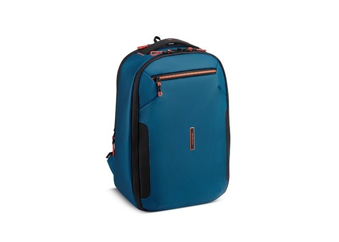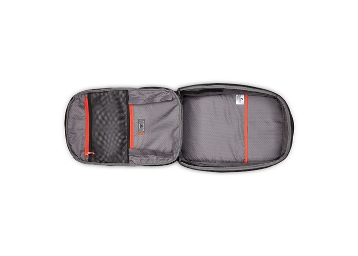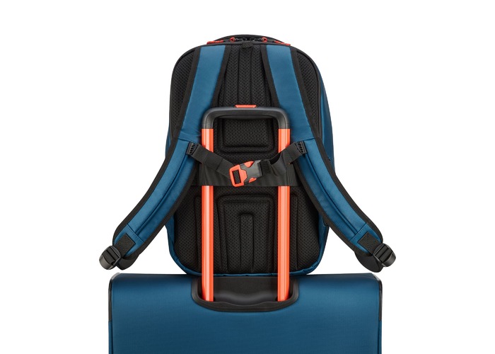 Рюкзак для подорожей-унікальна можливість поєднати особисті речі з сучасними гаджетами. Ідеальний варіант для відряджень в яких Вам знадобляться техніка, предмети першої необхідності і місце для одягу. Вироби колекції виготовлені з хвилястого поліестеру 900D з PU-покиттям, яке захищає від дощу, бризок, вологи й швидко сохне. Виріб оснащений двома основними віддідами, з кишенею для дрібних предметів з сітчастою перегородкою для організації та розділення одягу. Другий відділ призначений для ноутбука 15.6", планшету та документів формату А4. Також, передбачена бічна кишеня для пляшки/парасольки. Для зручності переміщення на задній частині розміщені м'які плечові ремені, планка для фіксації на телескопічній системі валізи, можливість застібнути плечові ремені фіксатором на грудях та ручка для вертикального перенесення.