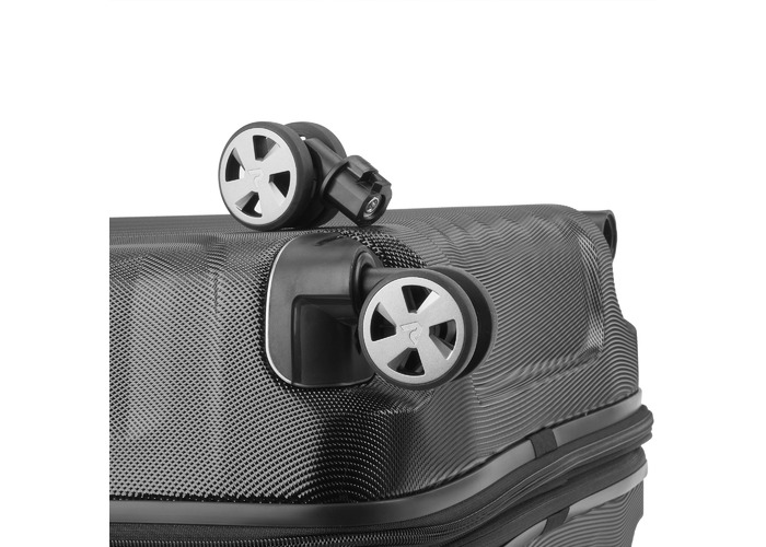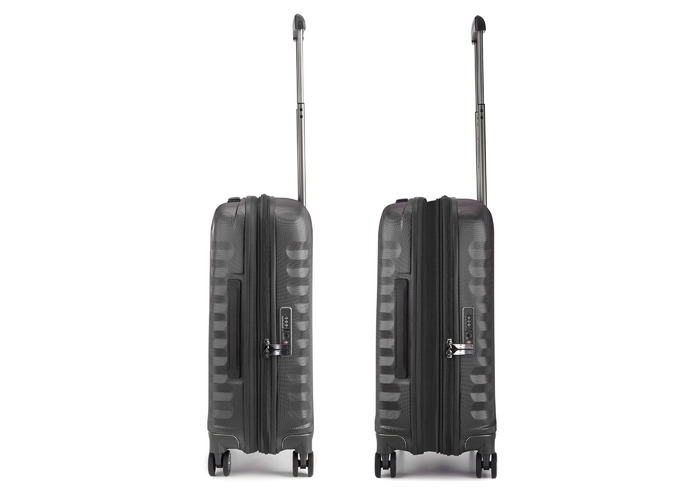 Валіза оснащена подвійними безшумними колесами, що обертаються на 360̊, які надають виробу маневреність, вбудованим кодовим замком з системою TSA, подвійним захистом блискавки High Tech Security Zip, сталевою, зміцненою телескопічною системою, прогумованими підйомними ручками для зручності переміщення, відмінною організацією всередині та знімною підкладкою. Також, дана колекція з розширенням, що дає +25% місткості валізам.