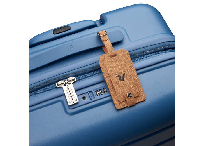 Маленька валіза оснащена 4 спареними, знімними і маневреними колесами. Для зручності переміщення передбачена еластична, підйомна пластикова ручка на верхній панелі, а також телескопічна ручка. Безпека і збереження багажу забезпечує вбудований кодовий замок з системою TSA. Виріб кладається з двох великих відділень, оснащених роздільниками та еластичними притискними ременями. Деталь, на яку варто звернути увагу: корковий адресник.