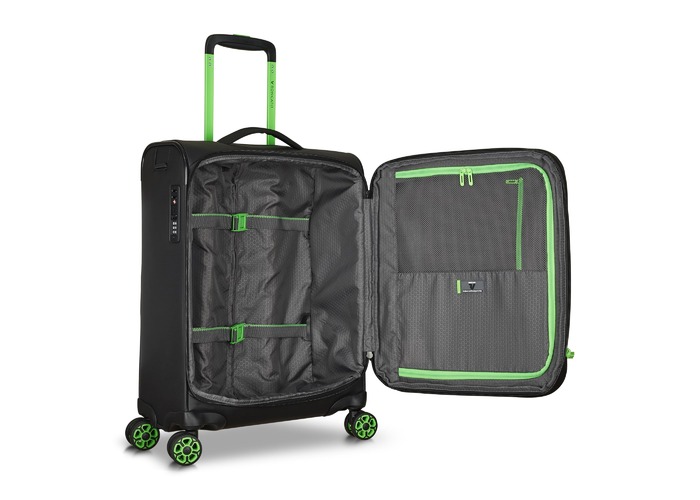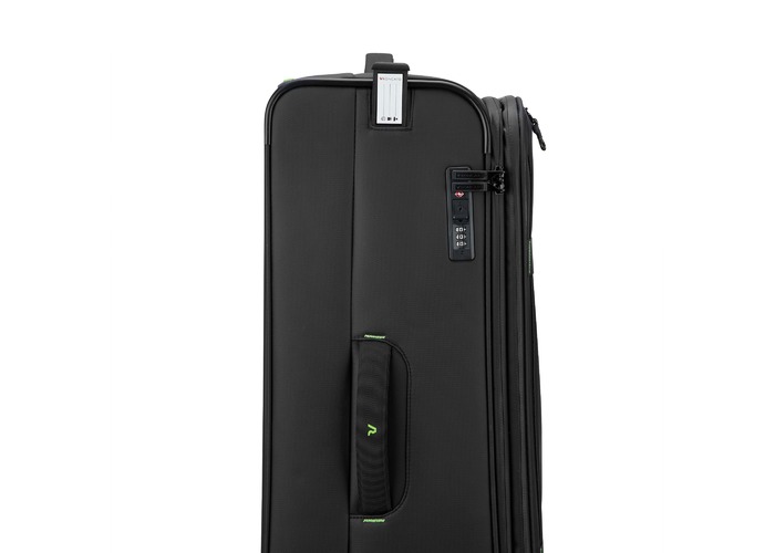 Вироби колекції виготовлені з хвилястого поліестеру 900D з PU-покиттям, яке захищає від дощу, бризок, вологи й швидко сохне. Оброблена поверхня гарантує високу стійкість до стирання та зносу, а також чудову стійкість до зчеплення та розривів, навіть за умов інтенсивного використання. Кожен візок оснащений водонепроникною блискавкою та кодовим замком TSA-системою що забезпечує максимальну безпеку ваших особистих речей, що містяться всередині багажу. Подвійні колеса, що обертаються на 360°, нижня частина валізи посилена текстурованим стійким до подряпин гумовим матеріалом.