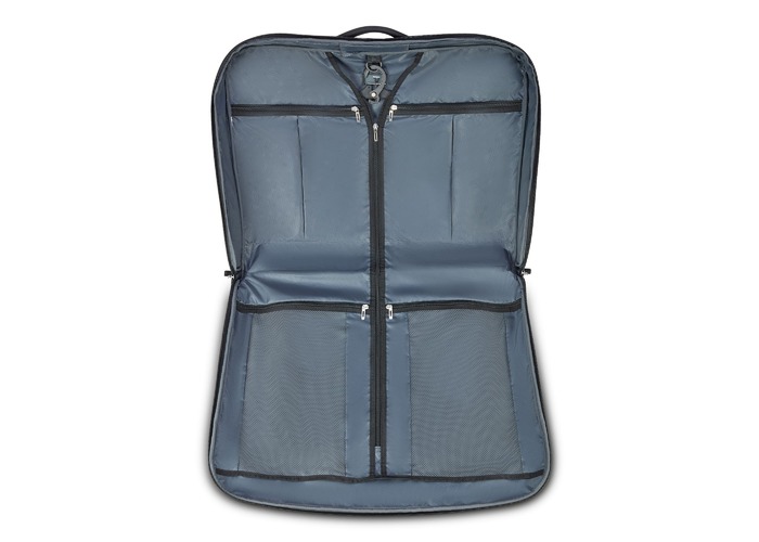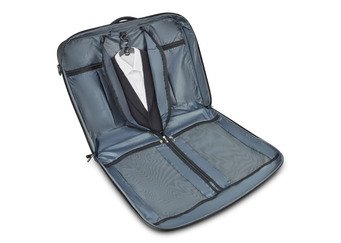 Портплед-унікальний дорожній аксесуар, який дозволяє зберегти костюм охайним під час подорожі. Зовнішня тканина виготовлена з нейлону та поліестеру для забезпечення довговічності та легкості, а внутрішня підкладка виготовлена з 100% переробленого RPet. Виріб закривається на блискавку, розрахований на один костюм. Зовні глибока кишеня на блискавці, всередині велике відділення з вішалкою для костюма, також є додаткові кишені на текстильній перегородці. Матеріал портпледу захищає ваші костюми від температурних перепадів і зберігає в первозданному вигляді.