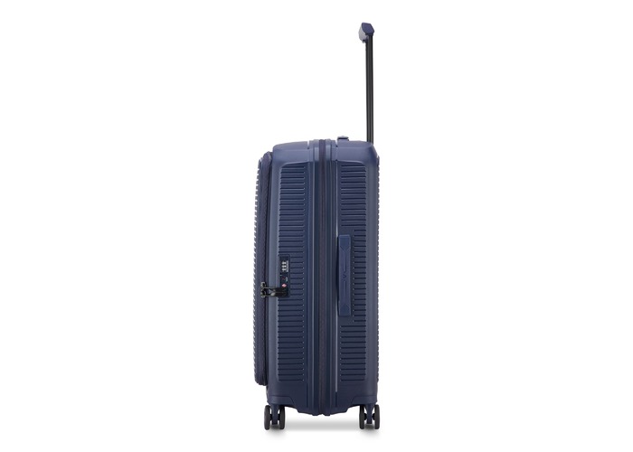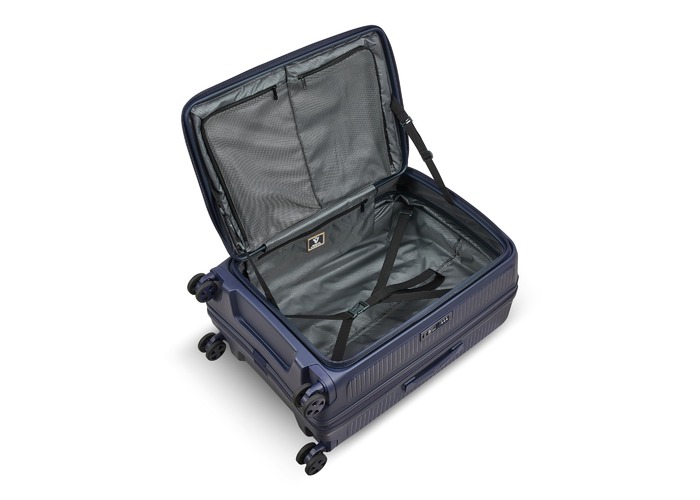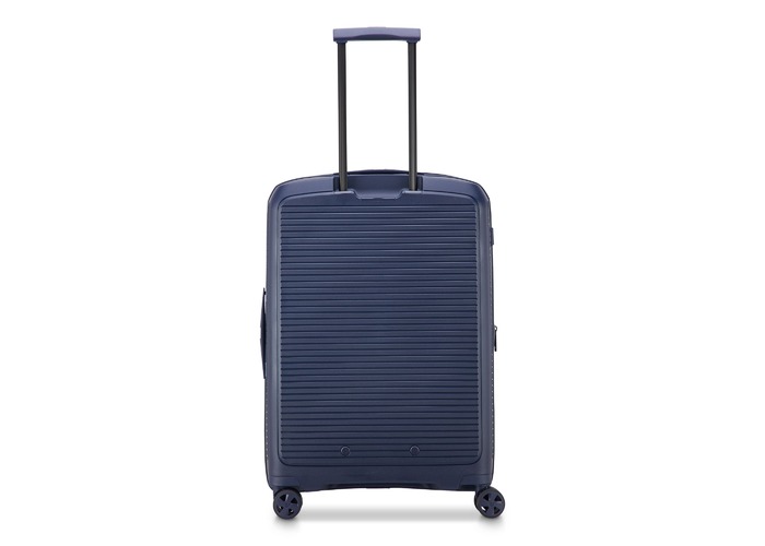 Валіза виготовлена з поліпропілену на 100% переробленого матеріалу, який пропонує: максимальну ударостійкість, надзвичайну міцність, оптимальну легкість, термостійкість. Оснащена 4 спареними і маневреними колесами. Для зручності переміщення передбачена еластична, підйомна пластикова ручка на верхній та бічній панелях, а також телескопічна ручка. Безпека і збереження багажу забезпечує вбудований кодовий замок з системою TSA. Серед найцінніших особливостей – інноваційна система FLAT TOP: кришка, що відкривається на 90° замість центрального отвору. Дизайн розроблений для зменшення об'єму та полегшення доступу до вмісту.