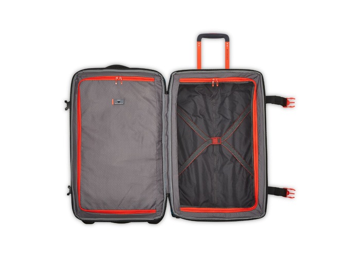 Вироби колекції виготовлені з хвилястого поліестеру 900D з PU-покиттям, яке захищає від дощу, бризок, вологи й швидко сохне. Оброблена поверхня гарантує високу стійкість до стирання та зносу, а також чудову стійкість до зчеплення та розривів, навіть за умов інтенсивного використання. Кожна сумка оснащена водонепроникною блискавкою та кодовим замком TSA-системою що забезпечує максимальну безпеку ваших особистих речей. Практичні відділення з перегородками на блискавці, еластичні ремені для одягу та велика кишеня для розділення брудного одягу. Наявна нижня ручка для полегшення підйому багажу, колеса для зручності переміщення та ніжки для стійкості.