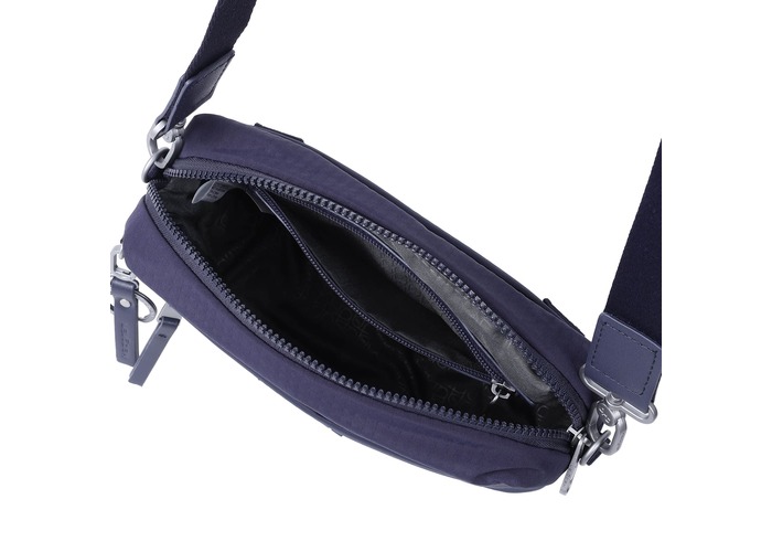Зручна, компактна сумка через плече виготовлена з переробленої тканини в поєднанні з еко-шкірою. Оснащена основним відділенням на блискавці з відділом для смартфону, та додатковою кишенею на блискавці з RFID-захистом. На задній кишені виробу, передбачено втоплену блискавку, яка щільно прилягає до тіла, як додатковий засіб безпеки, також, додатково оснащений шлейкою, що дозволяє закріпити його на стандартному ремені для одягу. Має знімний та регульований по довжині ремінь.