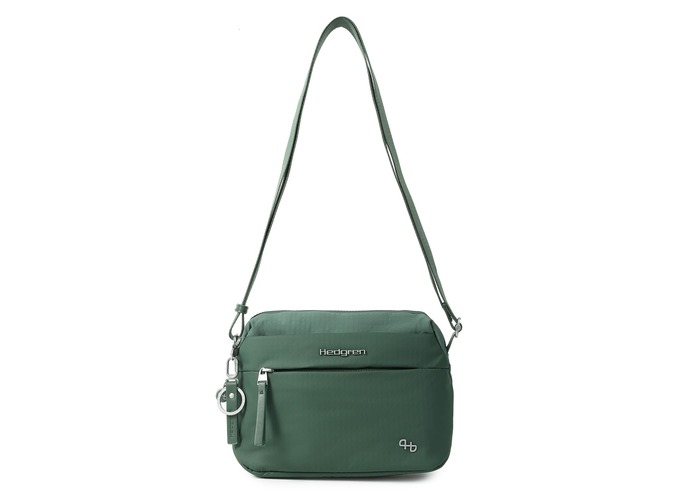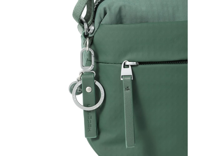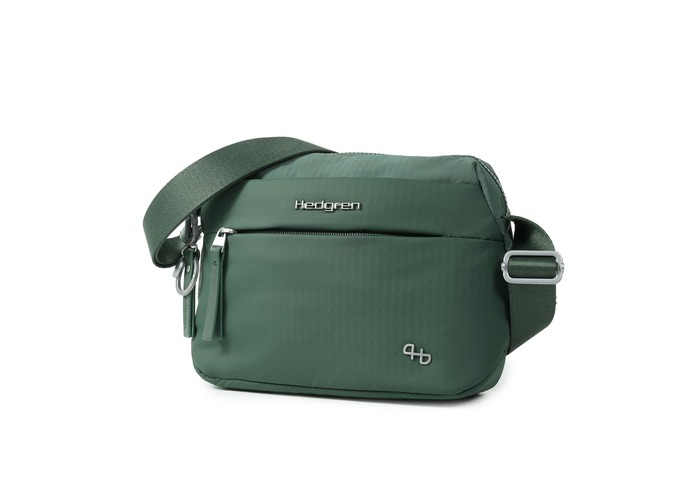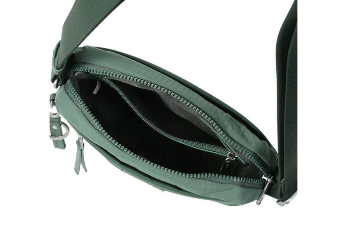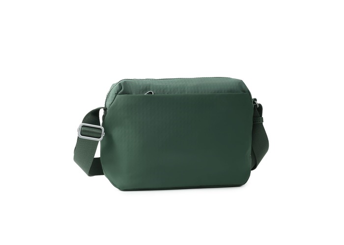 Зручна, компактна сумка через плече виготовлена з переробленої тканини в поєднанні з еко-шкірою. Оснащена основним відділенням на блискавці з відділом для смартфону, та додатковою кишенею на блискавці з RFID-захистом. На задній кишені виробу, передбачено втоплену блискавку, яка щільно прилягає до тіла, як додатковий засіб безпеки. Має регульований по довжині ремінь.