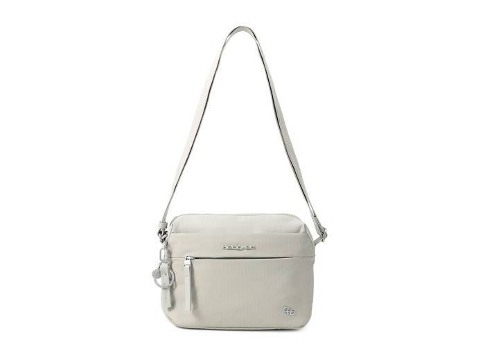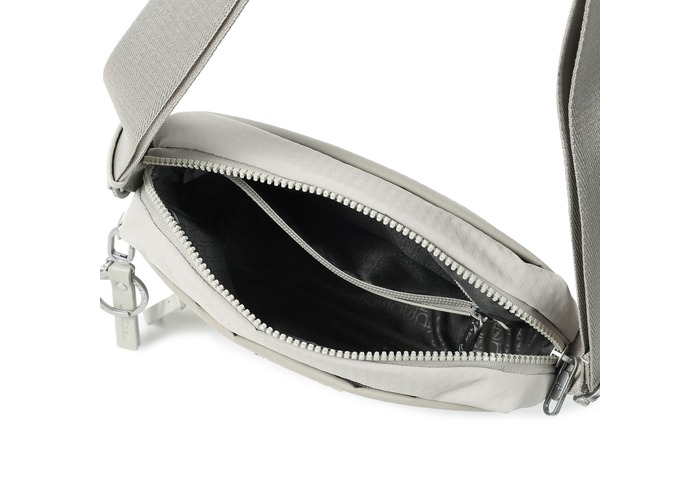 Зручна, компактна сумка через плече виготовлена з переробленої тканини в поєднанні з еко-шкірою. Оснащена основним відділенням на блискавці з відділом для смартфону, та додатковою кишенею на блискавці з RFID-захистом. На задній кишені виробу, передбачено втоплену блискавку, яка щільно прилягає до тіла, як додатковий засіб безпеки. Має регульований по довжині ремінь.