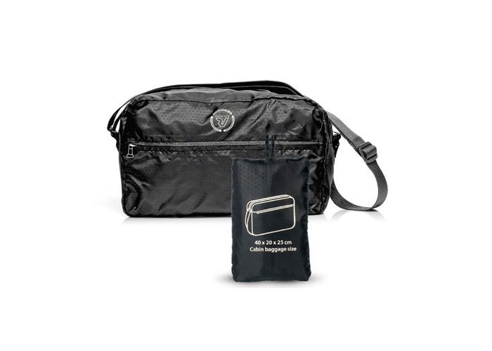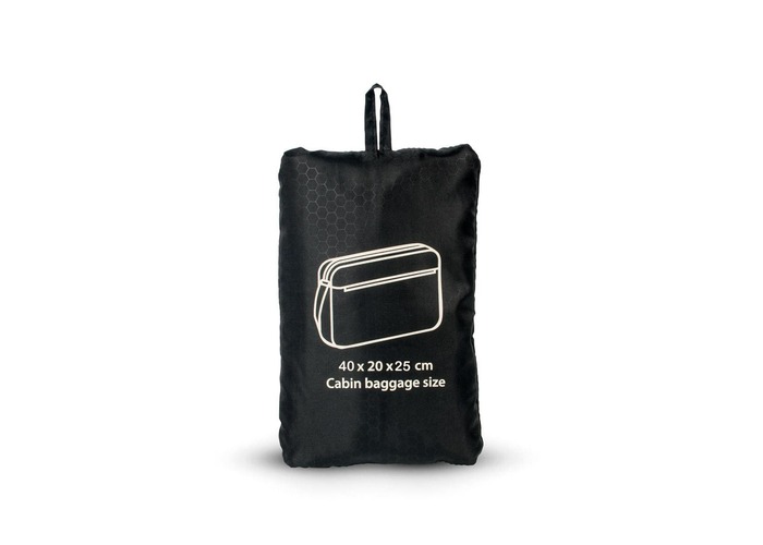 Легка ручна поклажа, оснащена вмістким основним відділенням, зовнішіньою кишенею на блискавці. Для зручності перенесення має плечовий ремінь, регульований по довжині плечови реміні та рукав для кріплення на телескопічну ручку валізи. Матеріал виробу - міцний та водонепронекний поліестер. У складеному вигляді майже не займає місця та підіходить для ручної поклажі WIZZ AIR.
