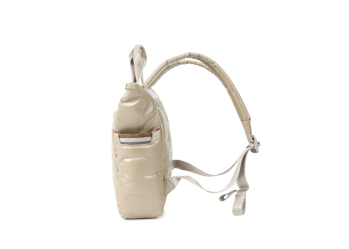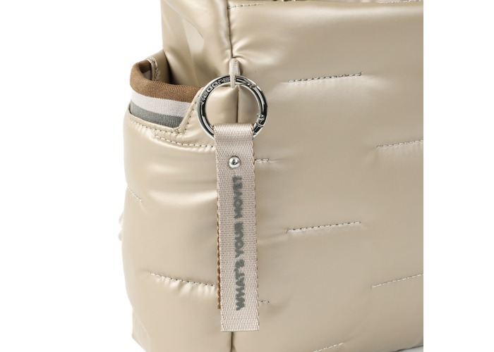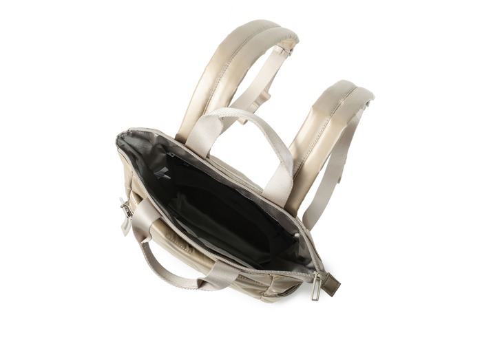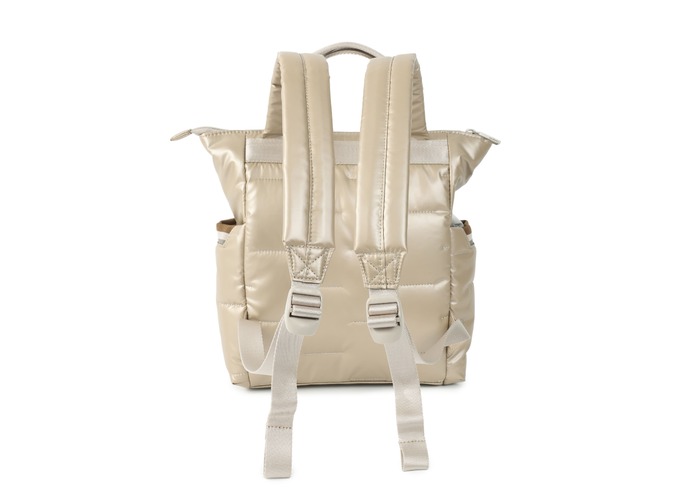 Місткий, дутий рюкзак-ідеальний супутник на кожен день. Оснащений великим основним відділенням з внутрішніми кишенями і знімною косметичкою. Із зовнішнього боку розташована кишеня на блискавці, також є бічні кишені для парасольки або пляшки з карабіном для ключів. Виконаний з щільного 100% polyester.