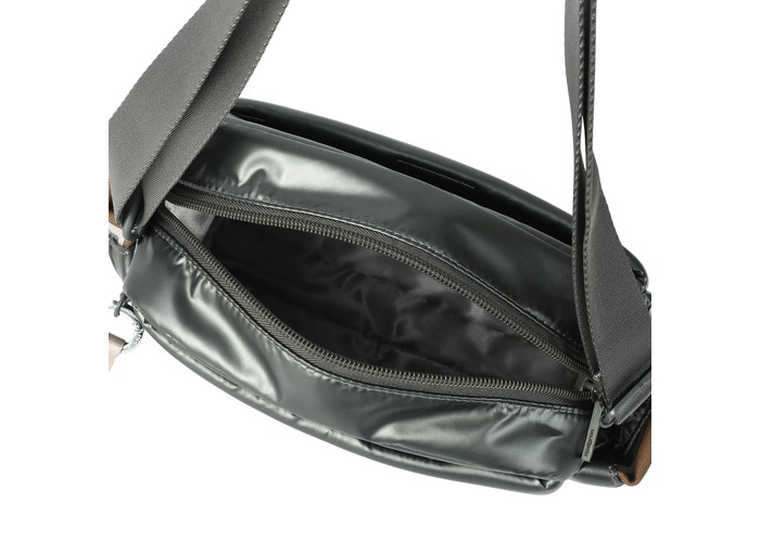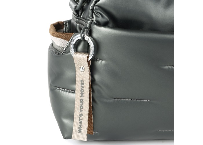 Вместительная, дутая сумка через плечо, освобождает руки и дает возможность быстро воспользоваться предметами первой необходимости в дороге или каждый день. Оснащена тремя отделениями на молнии и боковыми карманами для мелочей с карабином для ключей. В основном отделении 2 небольших кармана и съёмная, водоотталкивающая косметичка на молнии. Выполнена из плотного 100% polyester.