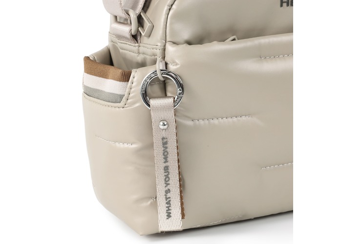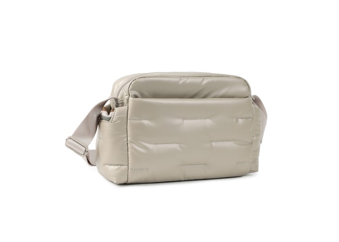 Вместительная, дутая сумка через плечо, освобождает руки и дает возможность быстро воспользоваться предметами первой необходимости в дороге или каждый день. Оснащена тремя отделениями на молнии и боковыми карманами для мелочей с карабином для ключей. В основном отделении 2 небольших кармана и съёмная, водоотталкивающая косметичка на молнии. Выполнена из плотного 100% polyester.