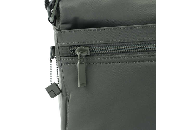 Удобная женская сумка через плечо, небольшого размера изготовлена из прочной ткани с ремнем, позволяющим регулировать длину. У изделия есть три отделения на молнии, в одном из которых есть карман на молнии и карман для документов, телефона и мелочей. На фасадной части расположен карман на молнии.